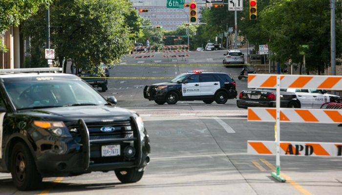 Yol kordon altına alınırken Teksas Polis Departmanına ilişkin araçların yola park etmiş olduğu görülüyor. — AFP/Dosya