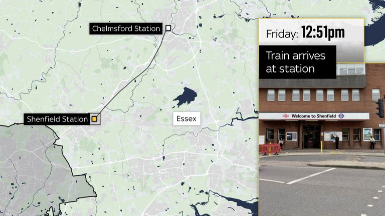 12.51: Tren, Brentwood'un Essex ilçesindeki Shenfield istasyonuna varıyor.