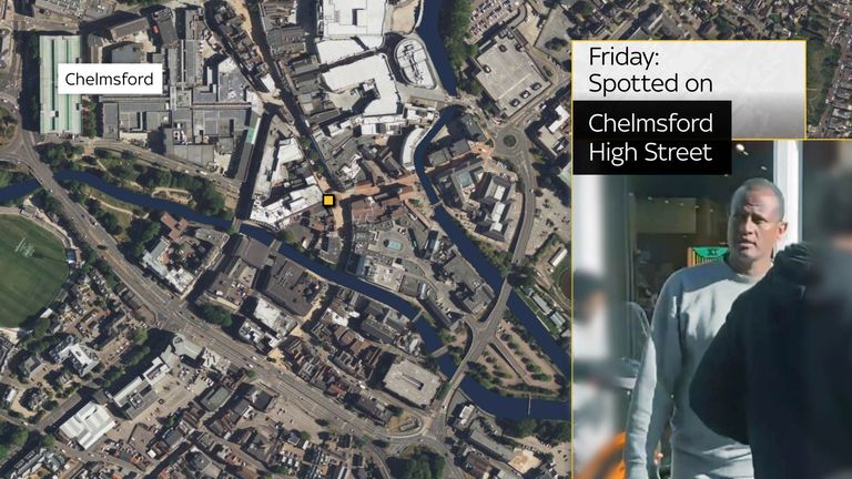 Görüntüler daha sonra Kebatu'yu Chelmsford High Street'te gösteriyor.